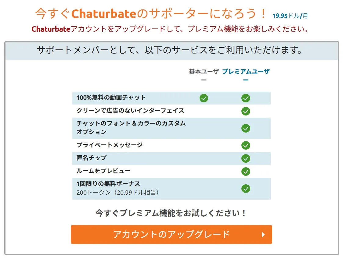 Chaturbate プレミアムユーザーとはサポーターになる|特典内容と料金システム Chaturbate.com(チャッタ…