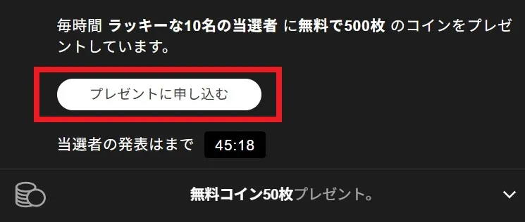 裏ワザ② 無料コイン50枚=約700円分がもらえるプレゼントに参加しよう